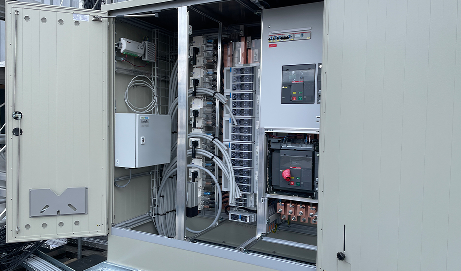 Neben dem Einzug von leistungsstarken Powerkabeln 3× (4×185 + 95 mm²) wurden ein Erweiterungsfeld für die Hauptverteilung sowie ein neues Feld für die PV-Abgänge erstellt. Die Organisation der notwendigen Stromabschaltungen und die aktive Mithilfe bei der Inbetriebnahme (IBN) stellten einen reibungslosen und sicheren Anlagenstart sicher.